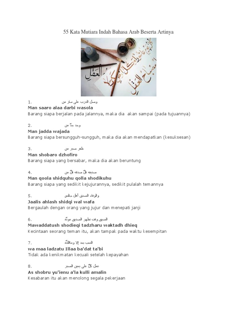 Kata Kata Mutiara Berbahasa Arab Beserta Artinya A