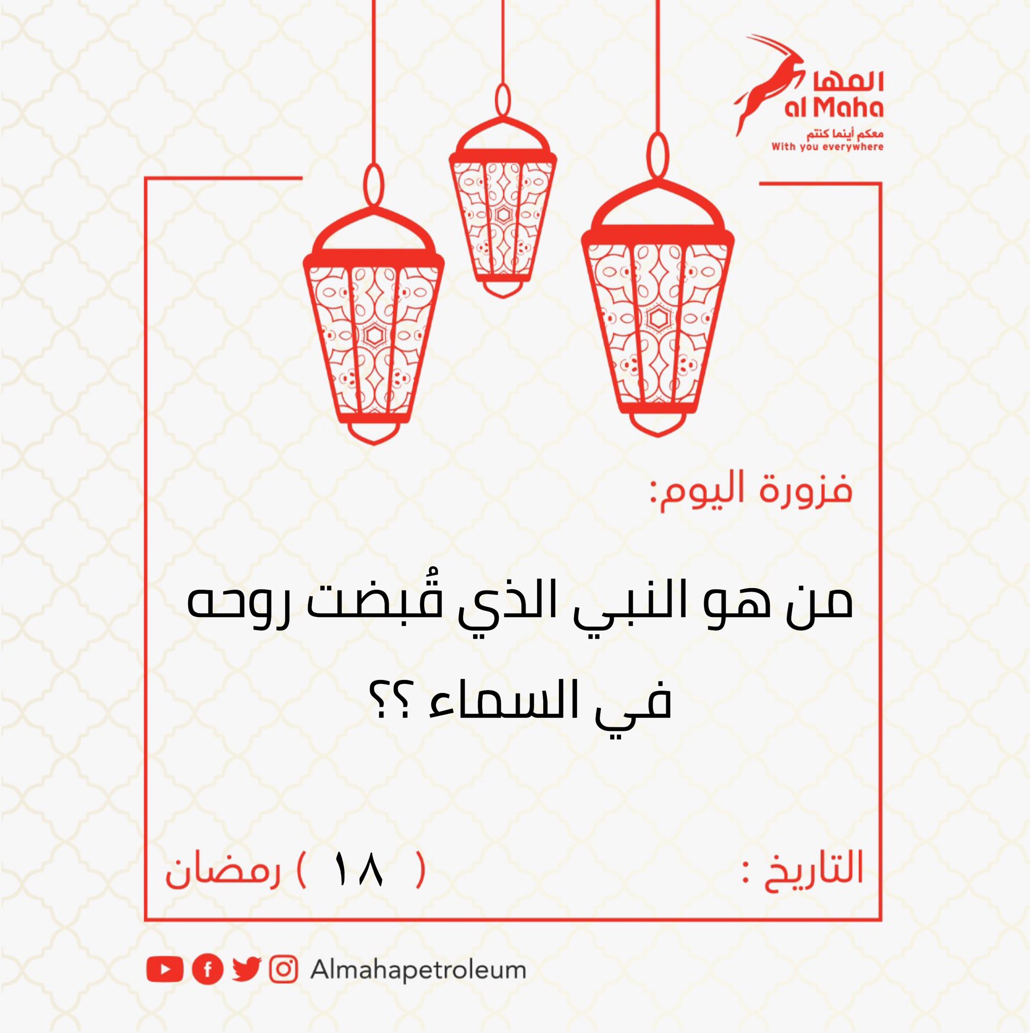 O Xrhsths Al Maha Petroleum Sto Twitter من هو النبي الذي ق بضت روحه في السماء فوازير المها شروط المسابقة ١ إضافة الحساب ٢ إعادة تغريد هذه التغريدة ٢ منشن شخصين مع الإجابة الصحيحة
