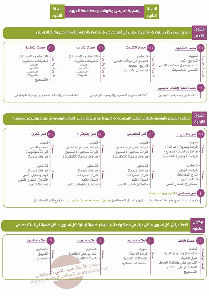 منهجية تدريس مكونات وحدة اللغة العربية للمستوى الثاني