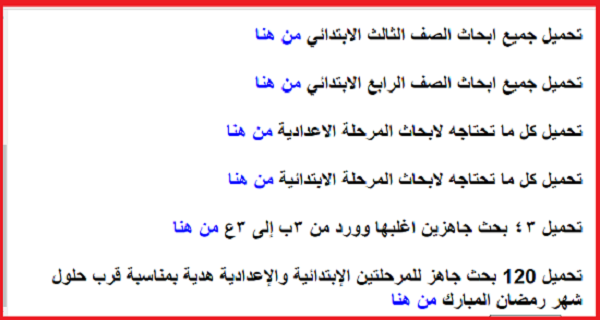 تحميل أضخم مجموعة أبحاث جاهزة لكل المراحل ولكل الصفوف ابتدائي اعدادي ثانوى عام و دمج و
